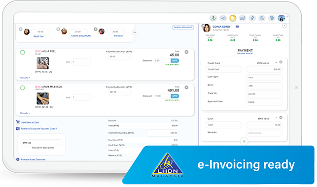 通过自动应用灵活的折扣选项(包括巴仙折扣、固定金额或单项促销),节省时间并减少付款管理中的错误。会员定价也将自动处理,确保准确的价格和权益,无需人工操作,同时提升企业的专业形象。借助我们与马来西亚 LHDN 电子发票系统的整合,您可灵活选择自动提交或合并方式,以符合您的业务需求。
