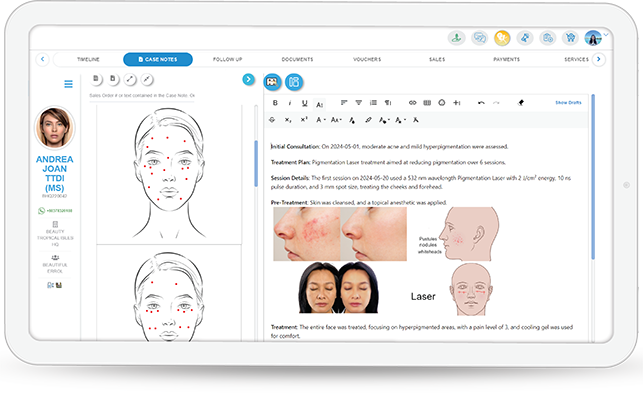 通过展示客户的疗程进展,如前后对比结果、治疗记录和进度时间线,提升咨询体验。这样能创造更具互动性和个性化的体验,建立客户对您服务的信任与信心。客户能够清晰地看到疗程的价值和效果,使每一次咨询都成为教育、激励和留住客户的机会,从而建立更牢固的关系并提高满意度。